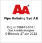 Pipe Relining Syd AB levererar alltid förstklassig relining.Vi erbjuder kostnadseffektiva och anpassade lösningar inom avloppsrenovering för alla behov.Allt vårt arbete protokollförs och dokumenteras och vi kvalitetssäkras även årligen av RISE och följer branschföreningen BRiFs standard.